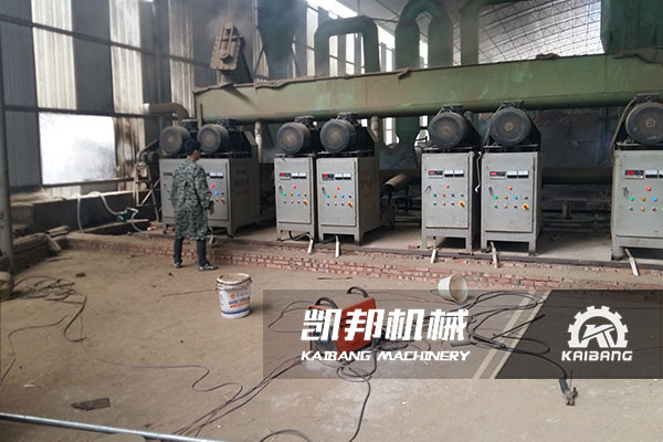 江西日產(chǎn)八噸機(jī)制木炭生產(chǎn)線現(xiàn)場。主要原材料為竹屑,炭化方式采用土窯。