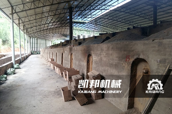 江西日產(chǎn)八噸機(jī)制木炭生產(chǎn)線現(xiàn)場。主要原材料為竹屑,炭化方式采用土窯。